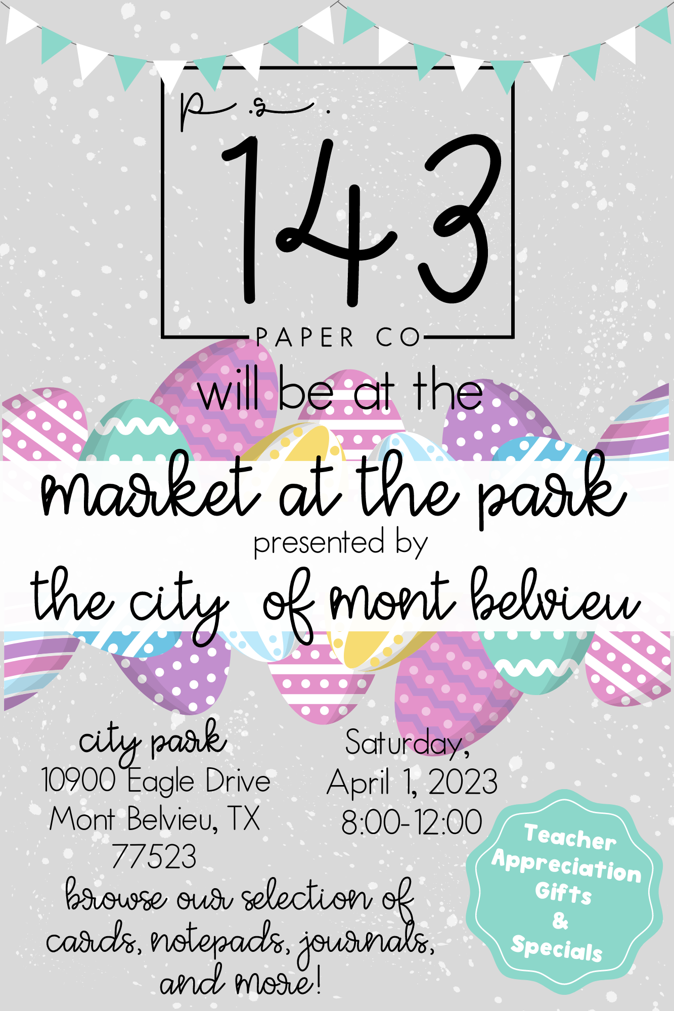 City of Mont Belvieu's Market in the Park will be held on April 1, 2023 from 8:00-12:00.